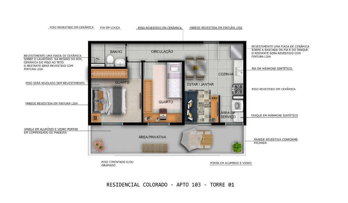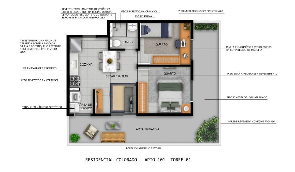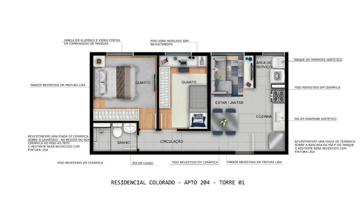 Tipologia: 2Q e 1Q (PNE) M2: 37,08m2 e 40,17m2 m²*